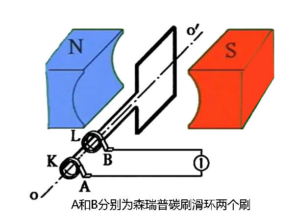 在介紹森瑞普(SenRing)發(fā)電機滑環(huán)的作用之前,先簡單介紹下發(fā)電機的工作原理。初中物理里面就講過,將一個閉合的線圈在磁場中切割運動就能產(chǎn)生電流,如下圖所示: