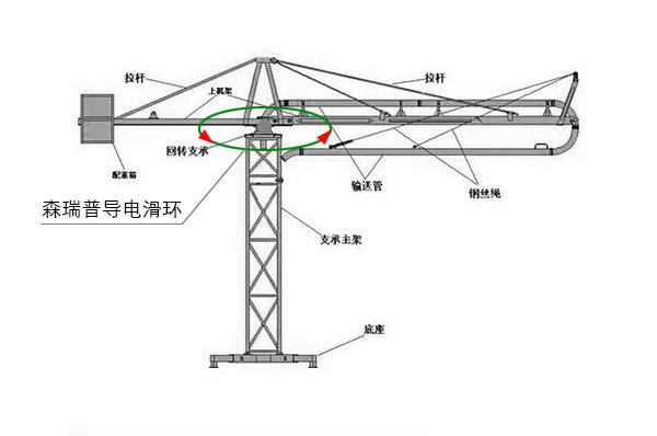 混凝土布料機(jī)使用滑環(huán)解決360度旋轉(zhuǎn)導(dǎo)電繞線的工作原理