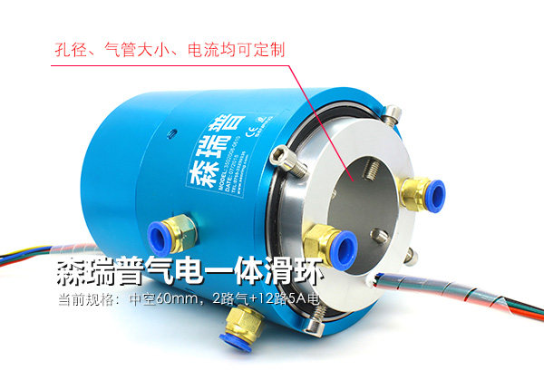 森瑞普氣電一體滑環(huán)與普通氣滑環(huán)和電滑環(huán)有什么不同?有這么一個裝置,360度旋轉(zhuǎn)的圓盤,上面有安裝氣缸和加熱板,氣缸和加熱板是隨著圓盤一起旋轉(zhuǎn)的。轉(zhuǎn)盤上設(shè)備的工作原理這樣的,由于加熱板需要定時的往下壓,以便對給轉(zhuǎn)盤上的工件解熱,但加熱板自己不會動,氣缸的作用就是讓加熱板能夠下壓和回收了。客戶在設(shè)計完他的方案后,發(fā)現(xiàn)傳統(tǒng)的方案會導(dǎo)致繞線和氣管無法旋轉(zhuǎn)。