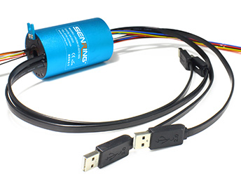 森瑞普uh1256-02系列單通道USB旋轉(zhuǎn)接頭,內(nèi)徑12.7mm,外徑56mm,可以360度旋轉(zhuǎn)傳輸1路USB2.0信號,可混合傳輸1~34路功率/電流/信號,可以穩(wěn)定傳輸IEEE1394和各種USB信號。SNU12系列單通道USB滑環(huán)具有信號傳輸穩(wěn)定、不丟包、不串碼、回損小、插入損耗小等優(yōu)點,滑環(huán)的孔徑為12.7mm,可適用于任意旋轉(zhuǎn)軸徑小于12.7mm的360度旋轉(zhuǎn)裝置。SNU12系列USB滑環(huán)是森瑞普的標(biāo)準(zhǔn)型號,有庫存,通用性強,如果需要定制特殊規(guī)格型號,請聯(lián)系森瑞普技術(shù)人員。