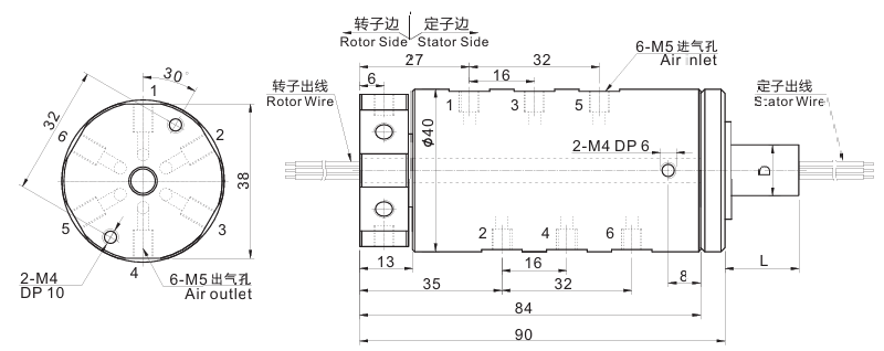 - 孔徑6mm,氣電一體規(guī)格無孔,如需中心通孔可以聯(lián)系森瑞普銷售人員;