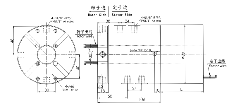 - 氣電滑環(huán)中心有30通孔,可以穿旋轉(zhuǎn)軸;